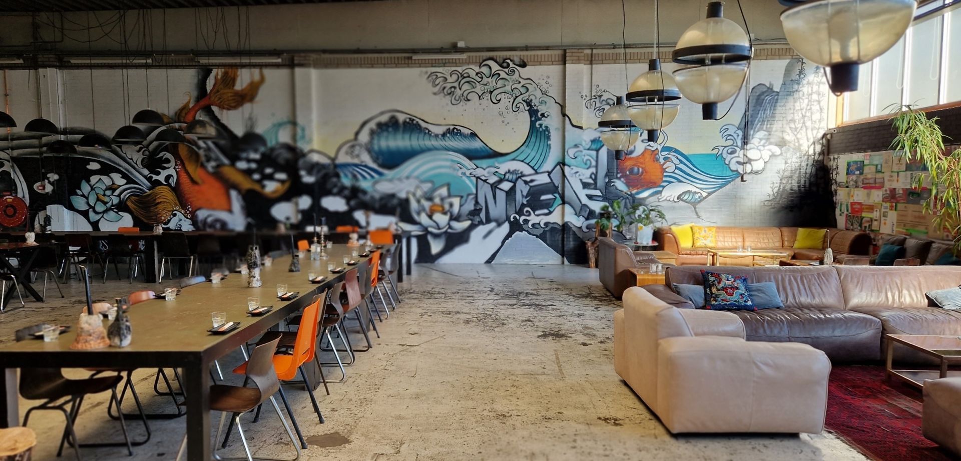 Bij LE:EN in Utrecht komt de creatieve energie van de locatie perfect samen met het maatschappelijke karakter van Bouw een fiets voor Afrika. Na het bouwen en pimpen van de fietsen is het heerlijk ontspannen en napraten in de industriële, groene setting met verrassende gerechten.